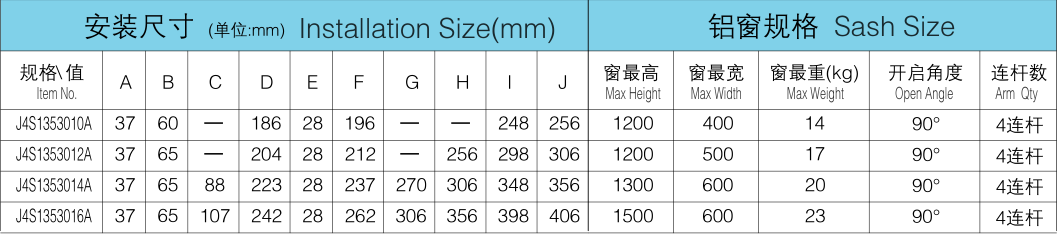13.5轻型双支点平开窗滑撑系列
